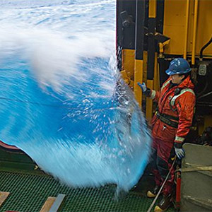 National Science Foundation Posted June 4, 2018 Image: Ted Blanco / Southern Ocean Carbon and Climate Observations and Modeling project (SOCCOM)" A wave breaks into the Baltic Room--which provides access to launch and retrieve instruments--aboard the R/V Nathaniel B. Palmer during a 2017 research cruise of the NSF funded Southern Ocean Carbon and Climate Observations and Modeling - SOCCOM. SOCCOM focuses on determining the influences of Antarctica's Southern Ocean on global climate: https://soccom.princeton.edu/content/overview